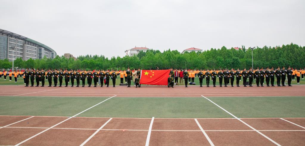 伴随着学校国旗护卫队铿锵有力的步伐,现场师生向国旗行注目礼,在齐声同唱、庄严雄壮的国歌声中,开幕式拉开帷幕。