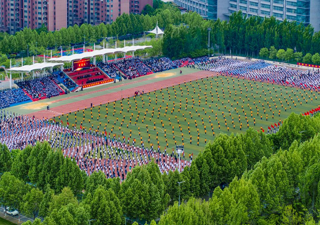 开幕式上,来自中华优秀传统文化传承基地八段锦社团的学生与千余名运动员代表共同带来了精彩的八段锦表演,大家步调一致,整齐划一,舒展大方,张弛有度,场面极为壮观,赢得了观众阵阵掌声。