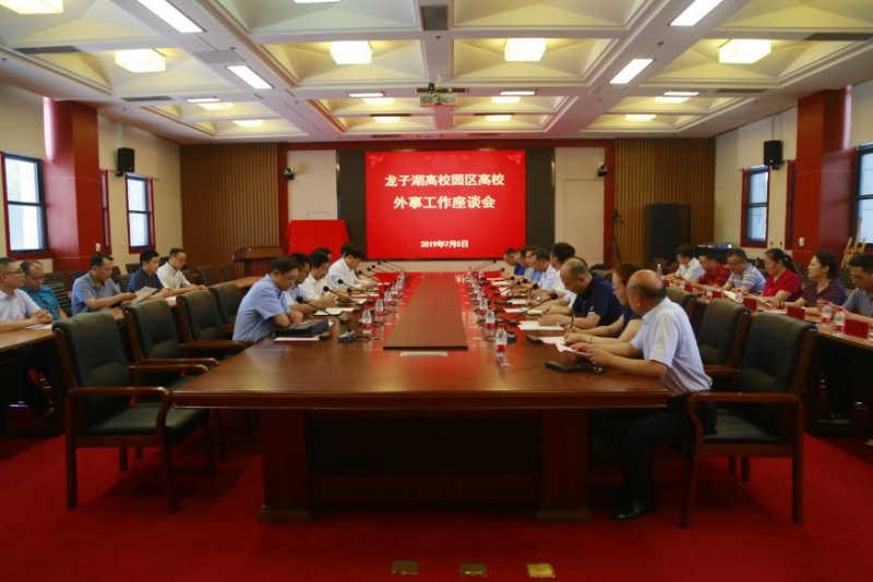 本网讯(文/李敬平 图/郭鹏翔)2019年7月5日下午,龙子湖高校园区高校外事工作座谈会在我校召开,省外办副主任王自文、省教育厅副厅长刁玉华和省外办、教育厅相关处室负责人参加了座谈会。龙子湖高校园区有关高校主管外事工作的校领导或国际合作处处长参加会议。会议由教育厅对外合作与交流处处长徐恒振主持。