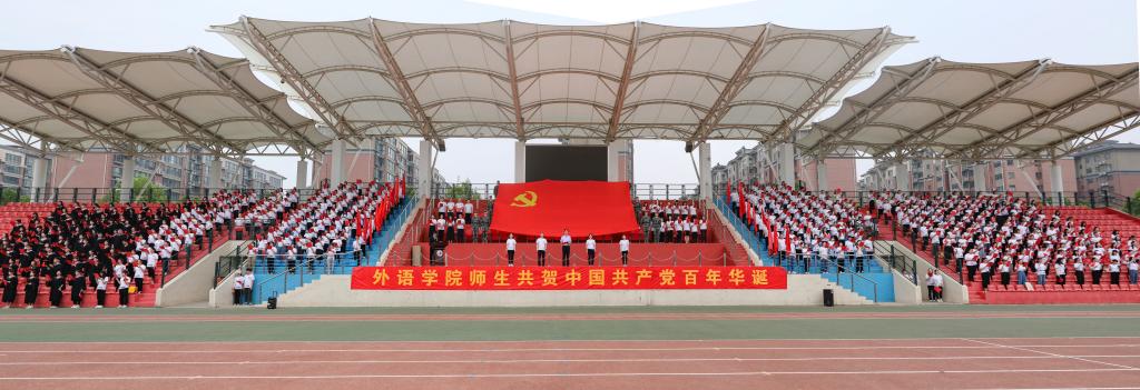 本网讯(文/孙淑伟 图/秦东仁)中流砥柱雄风在,万众同心庆百年!为热烈庆祝中国共产党百年华诞,贯彻落实《亚盈app(中国)官方网站庆祝中国共产党成立100周年活动方案》要求。2021年6月9日下午,外语学院在学校东操场举办了“百年华诞 青春献礼”中国共产党百年华诞庆典活动,学院领导班子成员和师生参与了此次活动。