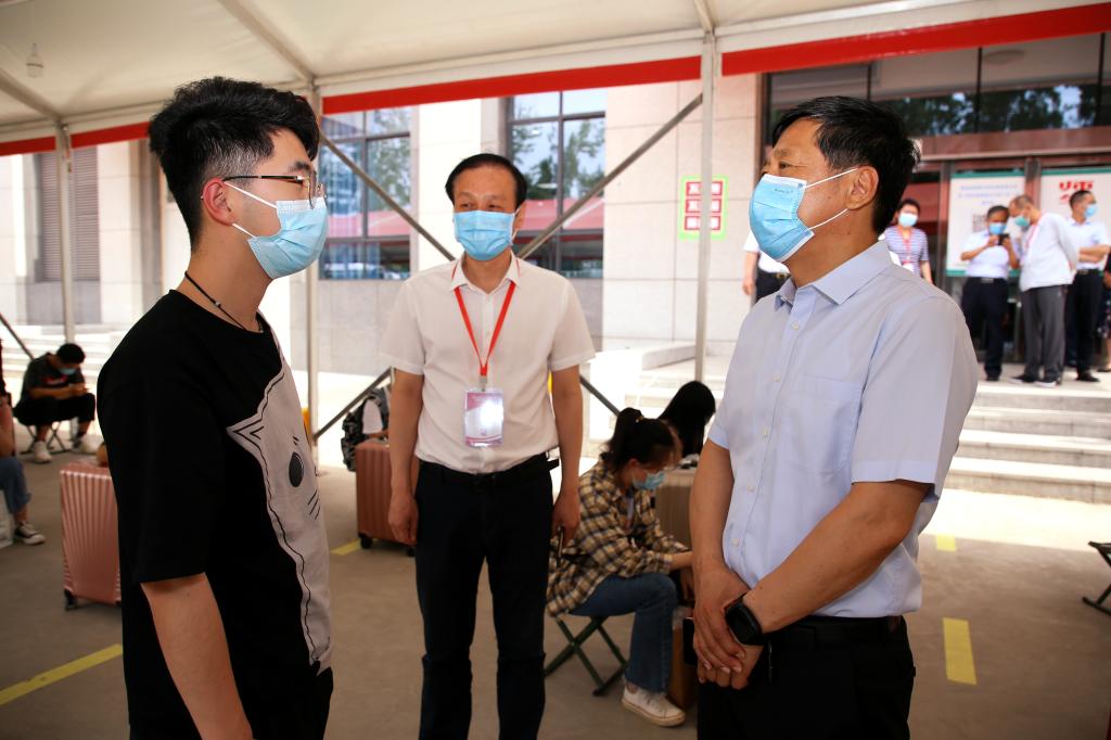 校党委书记别荣海、校长许二平等校领导在报到现场,亲切看望慰问坚守一线的工作人员和志愿者,详细了解学生报到情况,叮嘱大家要在做好个人防护的基础上,为全校师生把好疫情防控大门,坚决把风险拦在校门之外。校领导指出,前一阶段学校返校复学和常态化防控工作稳扎稳打、平稳有序,受到了上级部门肯定和社会各界好评。随着返校学生数量不断增大、毕业生就业和暑假的临近,要在系统梳理总结前期工作经验的基础上,及早谋划下一阶段工作安排,围绕开放学生堂食、见习学生安排、毕业生返校、期末考试等各项工作制定后续工作方案,确保持续统筹做好常态化疫情防控和学校中心工作。各工作组、各工作专班要扛牢责任、担当作为,提前谋划、细化举措,以更严的工作要求、更实的工作作风、更细的工作措施,进一步扎实做好返校复学、疫情防控和学校改革发展各项工作。