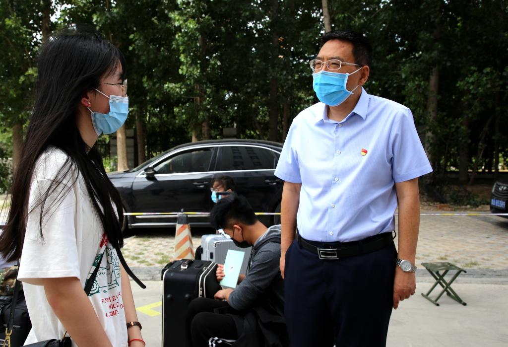 在健康筛查等候区,校领导与报到同学亲切交谈,详细询问假期中同学们网课学习、对学校防控措施的了解情况,并勉励同学们要克服开学后网格化管理的校园生活带来的不便,严格遵守学校疫情防控的各项要求,认真学习学校发放的防疫知识手册,妥善处理学习和生活之间的关系,在积极做好个人防护的同时,更加勤勉努力,认真学习,不辜负老师和家长的殷切希望,以优异的成绩回报学校和社会。