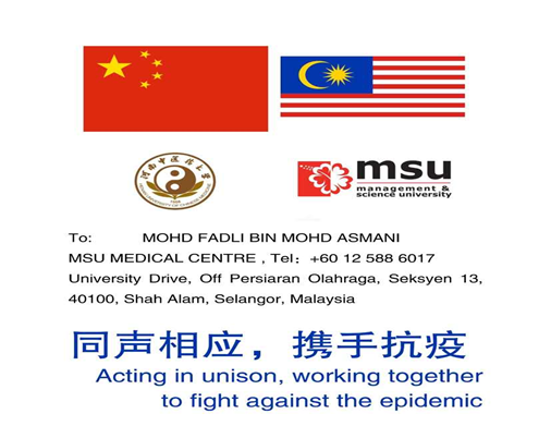 马来西亚当前正处于疫情发展期,MSU附属医院相关防疫物品缺乏,为支持MSU更好地开展疫情防控工作,我校向MSU发去了慰问信并筹集200套医用防护服、200副医用护目镜和200个医用N95防护口罩,寄往马来西亚助力当地疫情防控工作开展。我们相信,两校会更加珍惜这份美好情谊,同声相应、携手抗疫,共同开创合作新局面!