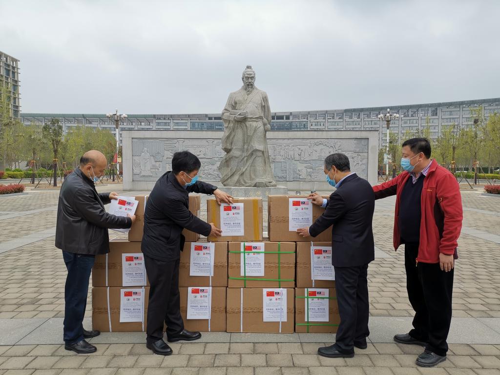 本网讯(文图/范家英)2020年4月1日上午,我校援助马来西亚管理与科学大学的防疫物资正式起运。校长许二平和校党委委员、副校长徐江雁高度重视此次国际援助,亲临起运现场在物资上贴上了表达两校友谊和携手抗疫的祝辞。