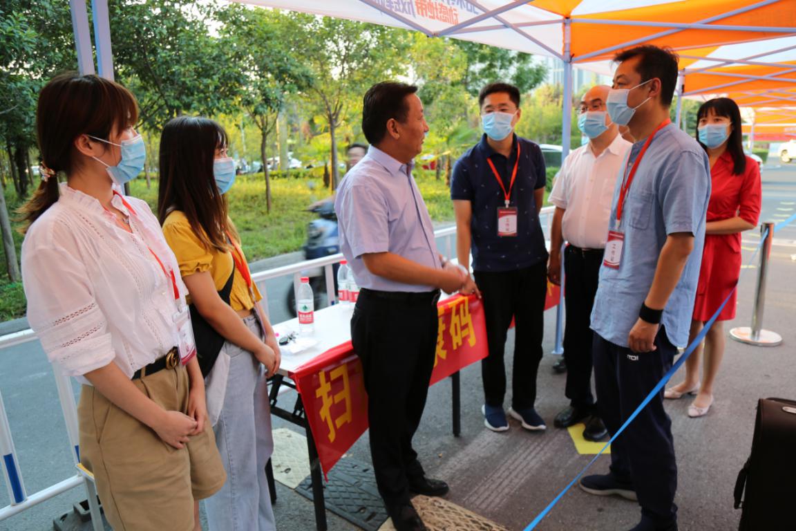 在学校门口,翟剑波一行看望了坚守岗位、迎接大学生返校的党委副书记张晓东及学生科、团委等工作人员,听取了张晓东关于学生返校情况的汇报,并叮嘱大家要把疫情防控应对风险想在前、准备做在前、工作干在前,以“硬核”的举措、暖心的细节,切实推进一临床学生返校复学工作顺利进行,用责任和爱心铺平莘莘学子的返校复学路。