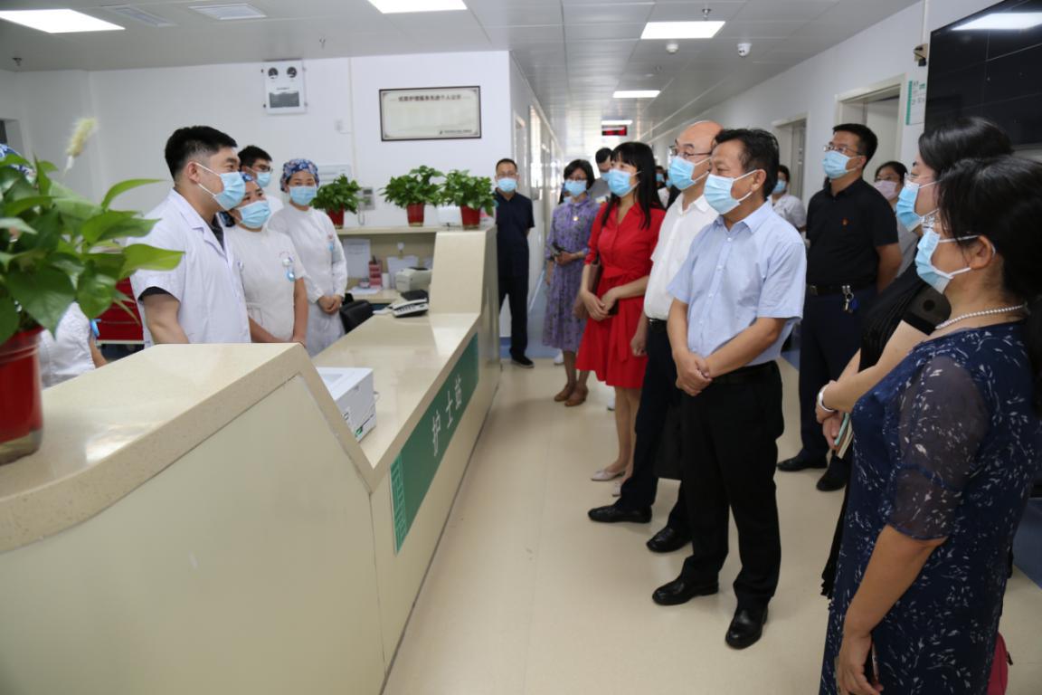 本网讯(文/图 何世桢)2020年9月2日下午,我院党委书记翟剑波、副院长蒋士卿带领党委办公室、院长办公室、宣传统战部、医务部、护理部、后勤部等部门负责人来到龙子湖院区调研。