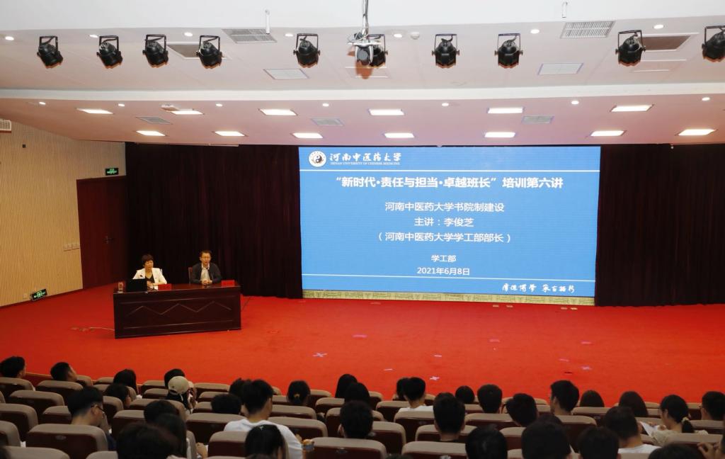 本网讯(文图/付珍娜)2021年6月8日,由学工部主办的2021年“新时代·责任与担当·卓越班长”培训班第六讲在图书馆第一报告厅举行。校学工部部长李俊芝以“亚盈app(中国)官方网站书院制建设”为题,为龙子湖校区全体班长、药学院、管理学院、信息技术学院、外语学院全体团支书、副班长、学生会全体成员、社团负责人进行培训。培训由学工部副部长李志轩主持。