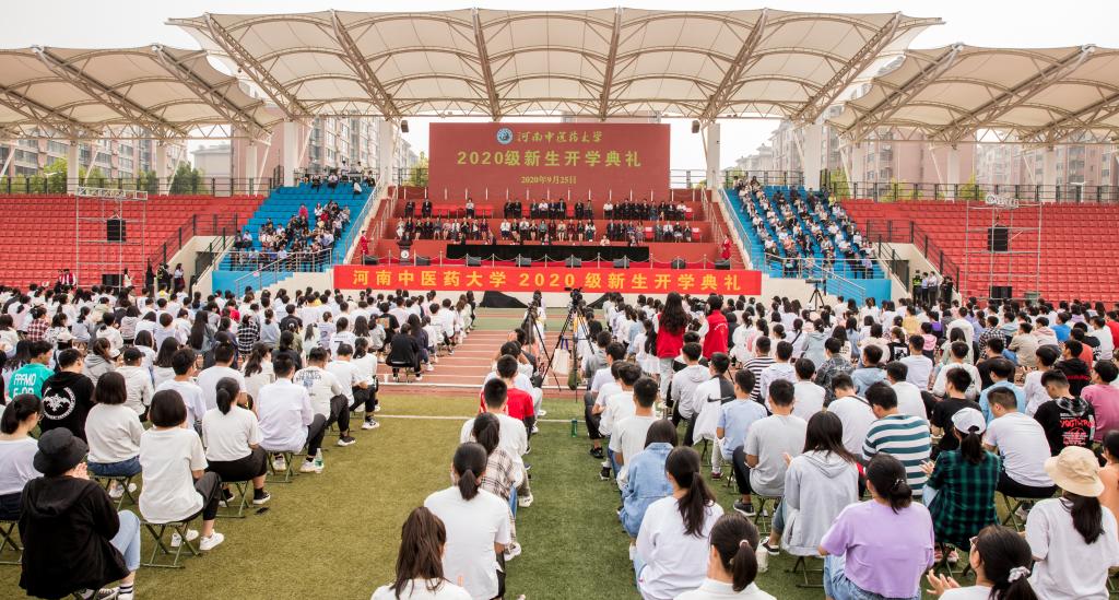 本网讯(文/赵会杰 图/刘洪峰 秦东仁)秋阳杲杲,金风飒飒,在这美好的季节里,我们满怀豪情迎来了新学年,同时也迎来了又一批朝气蓬勃的新河中医人。2020年9月25日上午,我校2020级新生怀揣梦想、齐聚东体育场,共同参加2020级新生开学典礼。