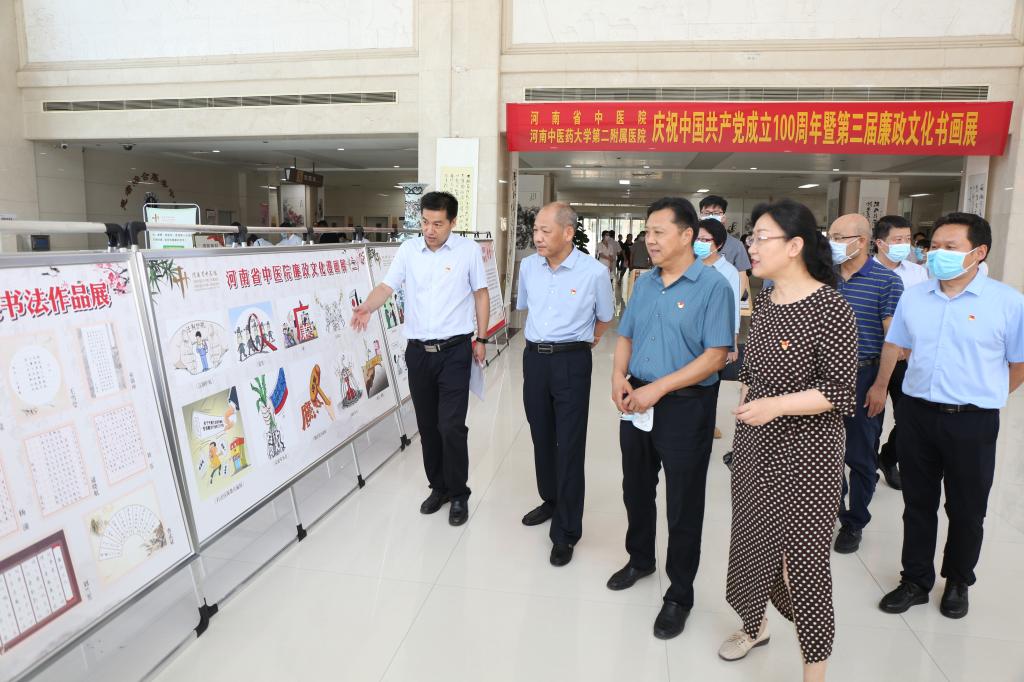 王少玉代表学校纪委对廉政文化书画展的开幕表示热烈祝贺。他指出,这次书画展是二附院深入开展党史学习教育的创新举措,也是推进廉政文化建设的又一丰硕成果,既是了解建党历史、中医药传统文化与廉政文化相融合的一个窗口,也是医护人员“守初心、担使命”的一面镜子。希望二附院以此次展览为契机,通过正能量传递和道德感化教育,充分发挥中医“治未病”理论与廉政文化教育人、影响人、鼓舞人的作用,更好地引导干部职工深入学习党史国史,深刻领悟思想伟力,让干部职工在文化艺术享受和文化熏陶中净化心灵、陶冶情操,增强廉洁自律意识,提高拒腐防变能力,以反腐倡廉的新进展新成效提升群众满意度,以实际行动庆祝中国共产党成立100周年。
