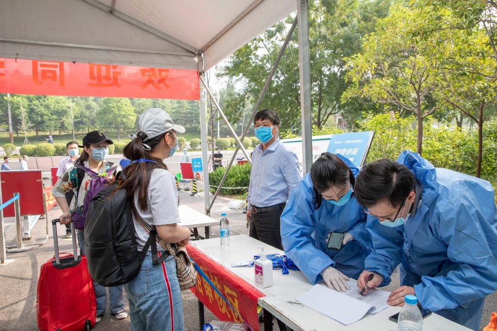 一大早,校党委书记别荣海、校长许二平等校领导来到学生报到现场,看望慰问辛勤坚守岗位的工作人员,详细询问了此次返校复学工作的准备情况,充分肯定了前期各项工作取得的阶段性成效,并与返校同学进行亲切交流。在看到井然有序的报到现场后,校领导表示,从前三批次报到工作的开展情况看,学校疫情防控的各项措施是科学的,起到了将病毒拒之门外的效果,整个返校复学工作平稳有序。这是学校复学工作指挥部带领各部门、各单位干部职工,时刻把师生的生命安全和身体健康放在首位,对师生最急最忧最盼的每个细节进行反复分析、研究、讨论、演练的结果,是广大教职工自元月以来主动放弃休息时间,克服重重困难,不分昼夜、连续奋战的结果,令人感动,令人敬佩,进一步彰显了新时代河中医人特别能吃苦、特别能战斗、特别能奉献的精神品质,这一平稳有序的返校复学工作局面来之不易,大家应倍加珍惜。在健康筛查结果等候区,不少同学正在仔细翻阅学校发放的防疫知识手册,校领导欣慰地说,虽然全国多地均已下调疫情防控风险等级,但返校复学牵涉大规模、多地区的人口流动,校园作为特殊场所,全校师生还要进一步提高政治站位,以最高风险响应来认真对待,时刻绷紧思想之弦,严格按照学校疫情防控的相关要求,积极行动起来,自觉克服工作、学习、生活中的诸多不便,牢固树立“过几天苦日子”的思想,师生同心、同向、同行,共克时艰。校领导还反复叮嘱同学们一定要照顾好自己,以实际行动做到学习生活和科学抗疫两不误。