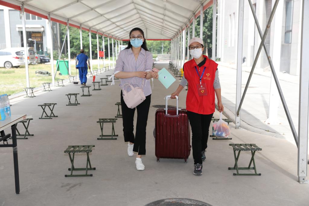 在报到现场,工作人员和志愿者们热情引导返校学生有序完成入校的每个流程和环节。昔日里,站在三尺讲台上传道受业解惑的老师们化身志愿者,在返校复学现场帮助同学们运送行李、指引路线、讲解防控措施,使同学们倍感亲切和温暖。