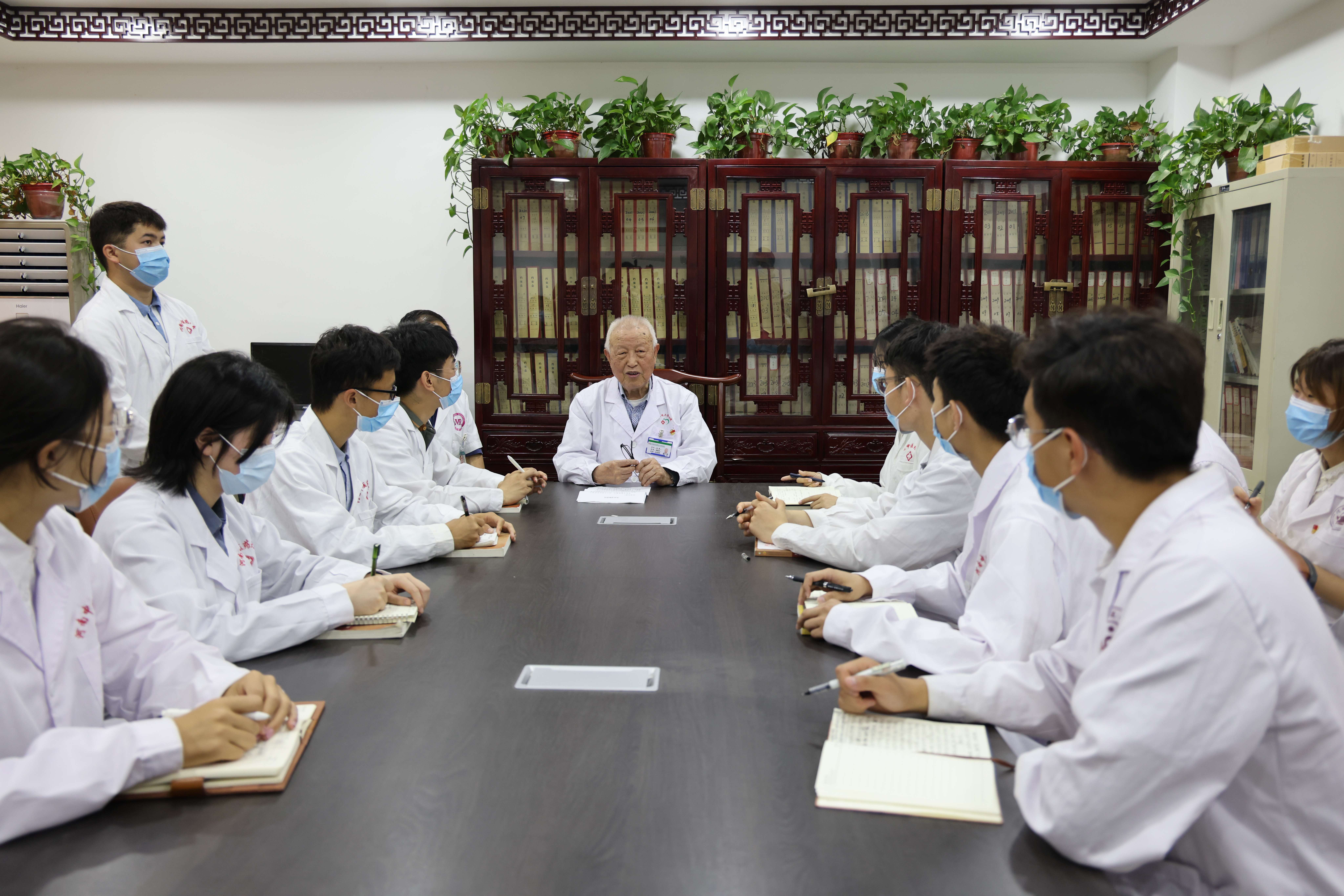 本网讯(文/李志刚 图/潘向昆)为进一步贯彻落实习近平总书记在南阳考察调研时的重要讲话和指示精神,聆听中医前辈对中医药学子的殷切希望。2021年5月19日上午,国医大师张磊就如何传承创新发展好中医药与三附院学生代表进行了座谈交流。
