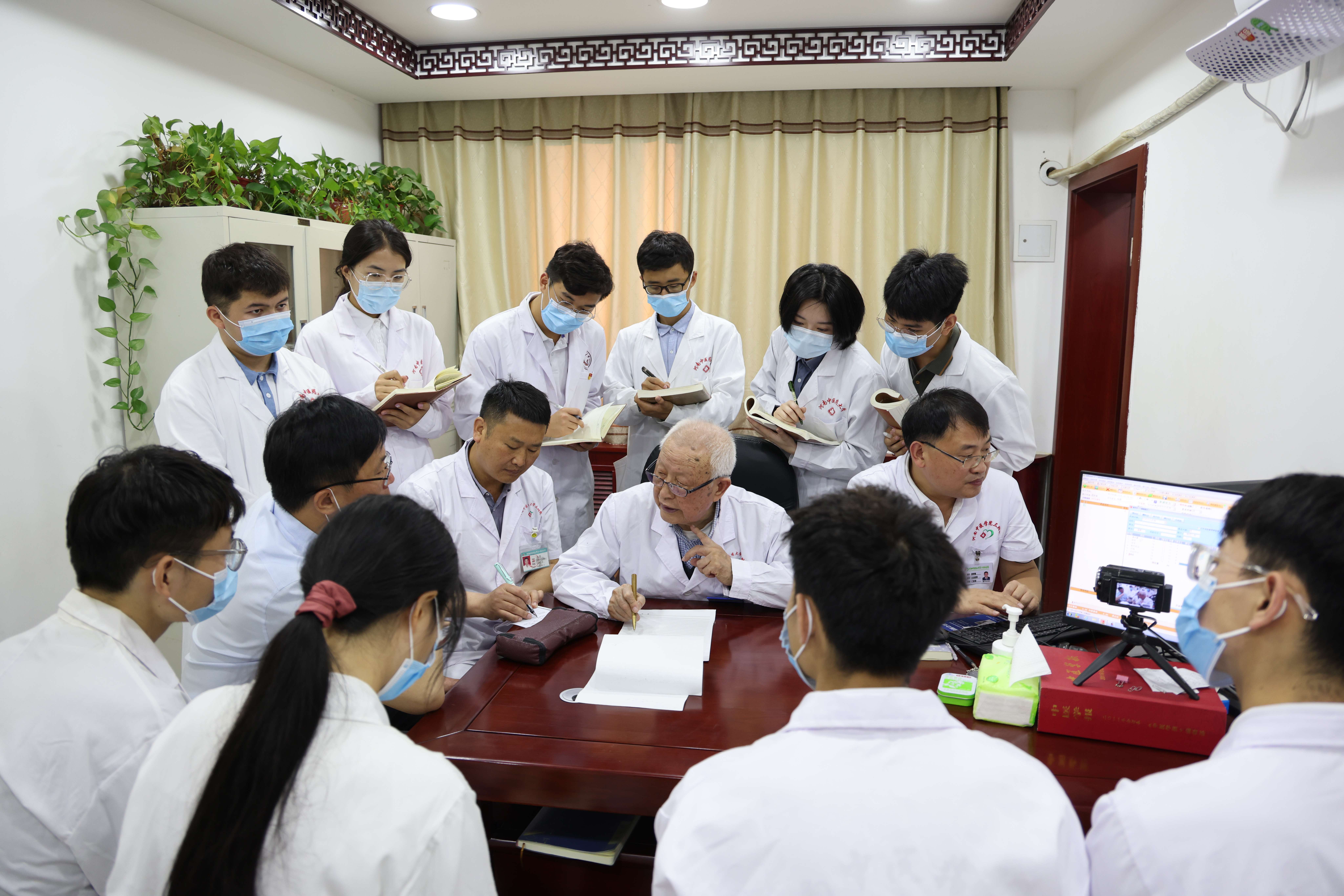 张老师指出,做好中医药发展,一是要做好中医传承,既要强根固基,加大中医经典的教学和学习,打牢中医基本功。又要大力培养亚盈app(中国)官方网站中医药人才,传承好老师中医临床诊疗经验和学术思想,继续发扬中医药事业。二是要做好创新,进一步激发中医药发展的活力。要按照习近平总书记要求,注重用现代科学解读中医药学原理,走中西医结合的道路。在中医药发展的新形势下,中医人要两条腿走路,坚持中西医两手都要硬,中医院要中医很强、西医不弱。三是要守初心担使命。我们的学生、党员、教师和医务工作者,要感党恩跟党走,一辈子做好教书育人、救死扶伤这一件事,时刻践行习近平总书记对中医药发展的重要事实精神。他希望同学们抓住当前中医药发展的好机遇,大力弘扬伟大的抗疫精神, 增强中医药文化自信,认真钻研中医经典,夯实中医基础,认真跟师侍诊,练好治病本领,坚持中西医并重,慎终如始、再接再厉,不断提高临床诊疗能力和水平,上不负国家培养之望,中不负老师教导之恩,下不负病患性命之托,让中医药这一中华文明的瑰宝不断焕发新光彩,努力为人民群众提供更加优质高效的中医药健康服务,为健康中国作出更大贡献。