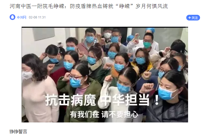 河南中医一附院毛峥嵘:防疫盾牌热血铸就“峥嵘”岁月何惧风流
