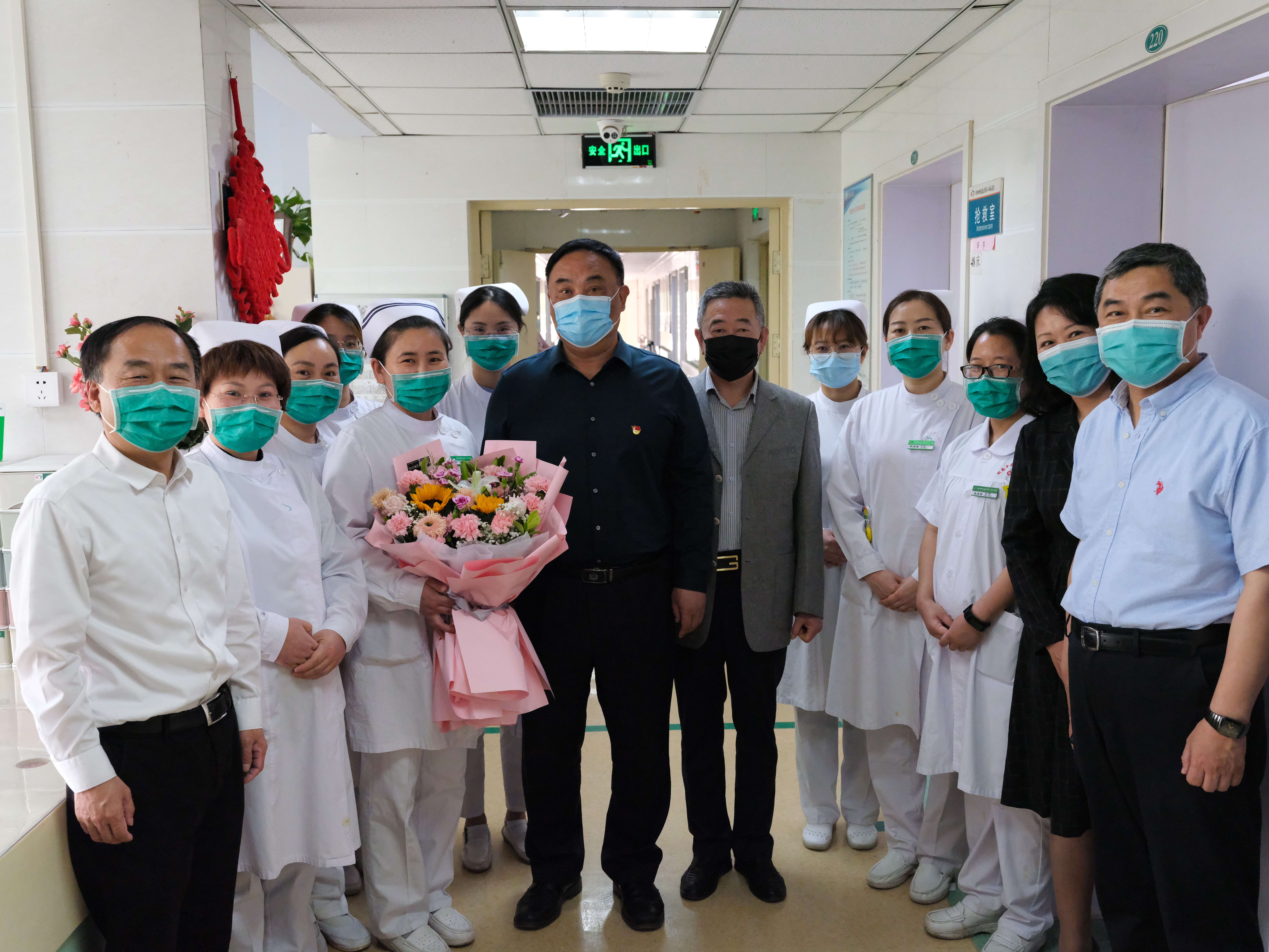本网讯(文/丁卫卫 图/田辉)在第110个国际护士节来临之际,2021年5月10日上午,校党委副书记、工会主席张小平,工会副主席刘延江等一行到三附院开展护士节走访慰问,三附院党委书记周运峰、院长张大伟、党委副书记焦钧、工会主席蔡庆春陪同慰问。