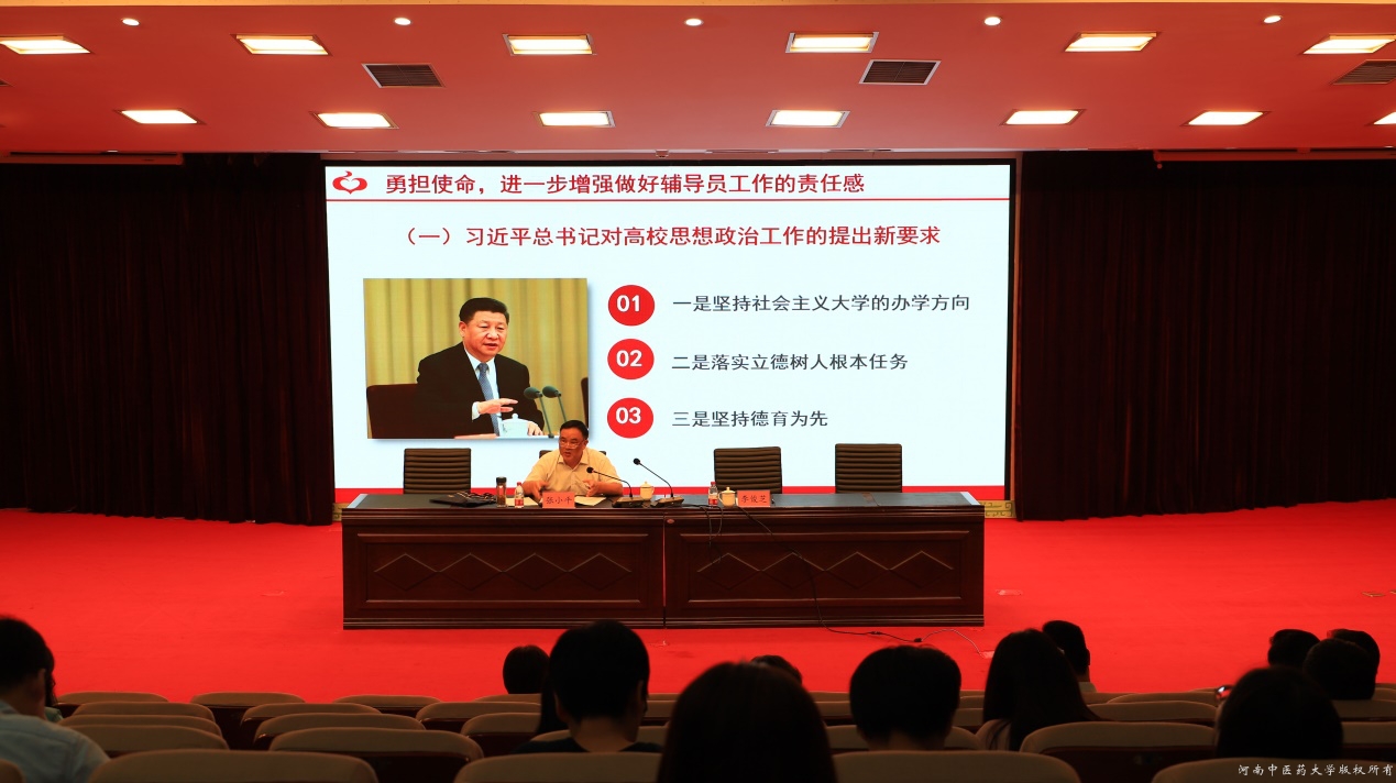 张小平结合当前风云变幻的国际形势和全面深化改革进入攻坚期的国内环境,指出中医药事业发展面临着重要机遇,作为中医药院校的辅导员,要认清形势,进一步增强做好辅导员工作的主动性。结合习近平总书记对高校思想政治工作提出的新要求和国家出台的加强和改进高校思想政治工作的新规定,张小平强调,大家要勇担使命,进一步增强做好辅导员工作的责任感。张小平勉励全体辅导员要知行合一,进一步锤炼做好辅导员工作的真本领,积极增强政治素质,做信仰坚定的引领者;提高业务能力,做学生信赖的管理者;讲究工作方法,做务实高效的实施者;培养创新精神,做与时俱进的开拓者;调节身心健康,做幸福人生的带动者。张小平强调,学生工作是育人的工作,全体辅导员要坚持价值引领,切实将立德树人落到实处。