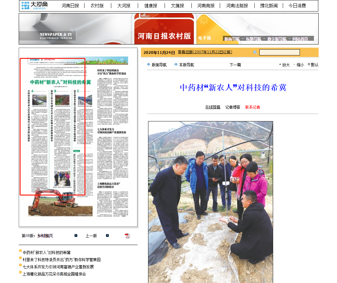 编者按:河南省中药材产业技术体系是由河南省农业农村厅和河南省财政厅牵头组建的13个现代农业产业技术体系之一,该体系成立2年来取得了显著成效。近日,河南日报、南阳日报分别对此进行报道。