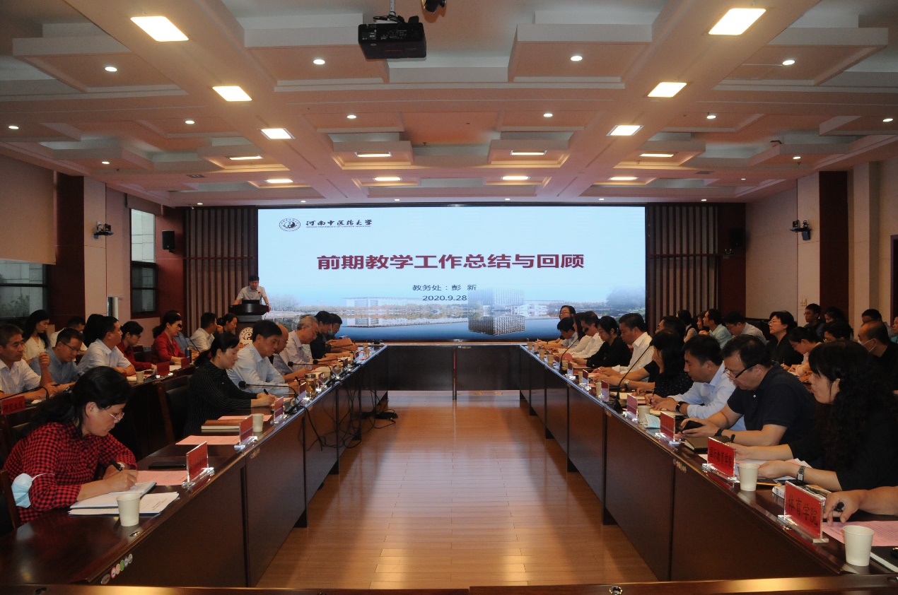 会上,教务处处长彭新首先围绕人才培养、专业建设、课堂教学改革、课程教材建设、教师团队建设、协同育人机制、教学信息化建设、教育教学研究等方面对“十三五”及疫情防控期间教学工作进行了回顾;对本学期期初教学检查情况、重点教学工作、一流本科专业和一流课程申报、考试综合改革等工作进行了安排。随后,教学评价与教师发展中心副主任高天旭通报了教研、教学质量保障及教师发展工作,安排了本学期重点工作。