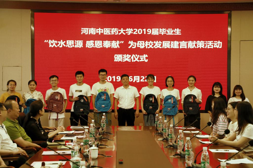 座谈会后,许二平为在我校举办的2019届毕业生“饮水思源 感恩奉献”——为母校发展建言献策活动中有优异表现的毕业生颁发奖品,并向大家赠送了学校精心准备的礼物。
