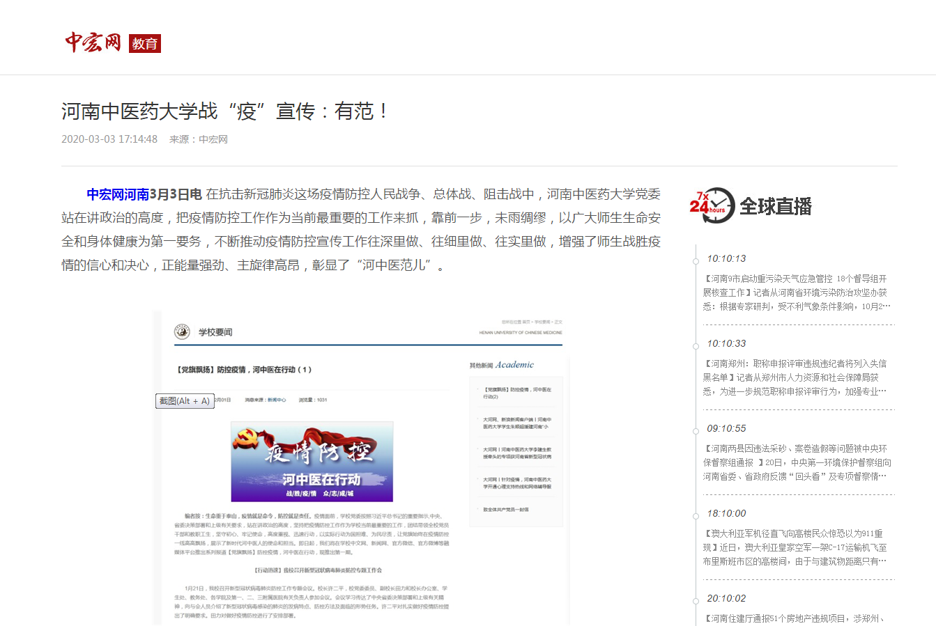 2020年3月3日,中宏网、大河网、网易新闻对我校有范的战“疫”宣传进行报道。