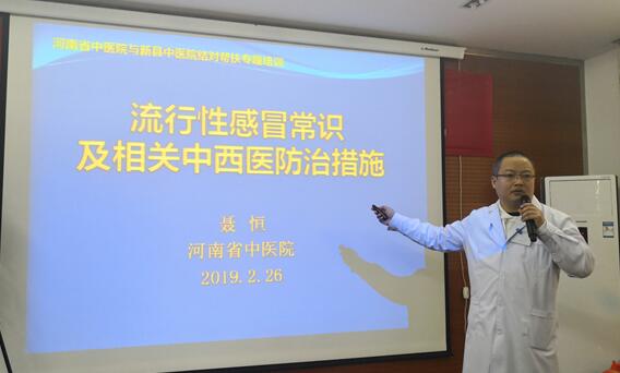 会上,二附院派驻专家心内科博士聂恒作精彩授课。他系统解读了国家卫健委2018年11月底发布的《关于进一步加强流行性感冒医疗工作的通知》,并结合流感的流行病学、病原学等知识从专业角度,向与会人员介绍了流感的传播途径、易感人群和流感的临床表现、并发症、实验室及影像检查等内容。针对大家最关心的治疗方案,他详细讲解了抗病毒药物的应用、流感疫苗的适宜人群及注意事项。为充分发挥中医药在流感防治中不可替代的独特作用,聂恒还结合国家卫健委及河南省卫健委分别发布的流感中医药防治方案,从儿童和成人两类两个群体,分别讲授了中医辨证分型、治疗原则、推荐方剂、随证加减等专业知识。