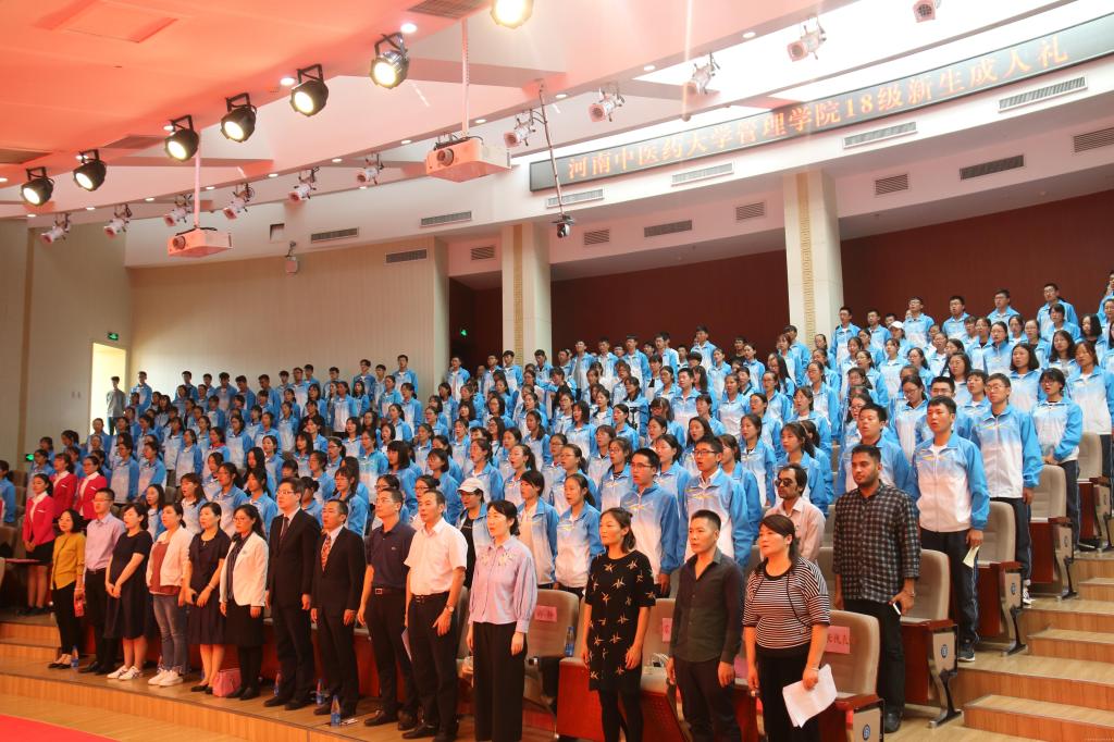 为帮助青年大学生坚定理想信念,扣好人生第一粒扣子,2018年9月29日下午,我校管理学院在图书馆第一报告厅举办了以“新时代 新青年”为主题的2018级新生成人礼活动。新闻中心及管理学院负责人,我校首届仲景教学名师贾成祥教授、教师代表、全体辅导员、家长代表及全体新生参加活动。