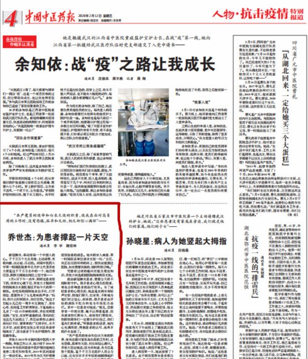 编者按:2020年2月12日,中国中医药报对我校一附院护士乔世杰的抗疫事迹进行报道,现将全文刊发如下: