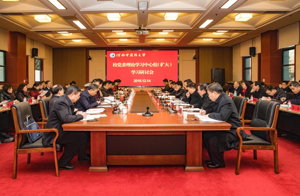 本网讯(文/李丹 图/秦东仁)2018年12月14日上午,我校在图书馆第三报告厅召开党委理论学习中心组(扩大)学习研讨会。校党委理论学习中心组成员和各院部党政负责人参加会议。会议由校党委理论学习中心组组长、党委书记别荣海主持。