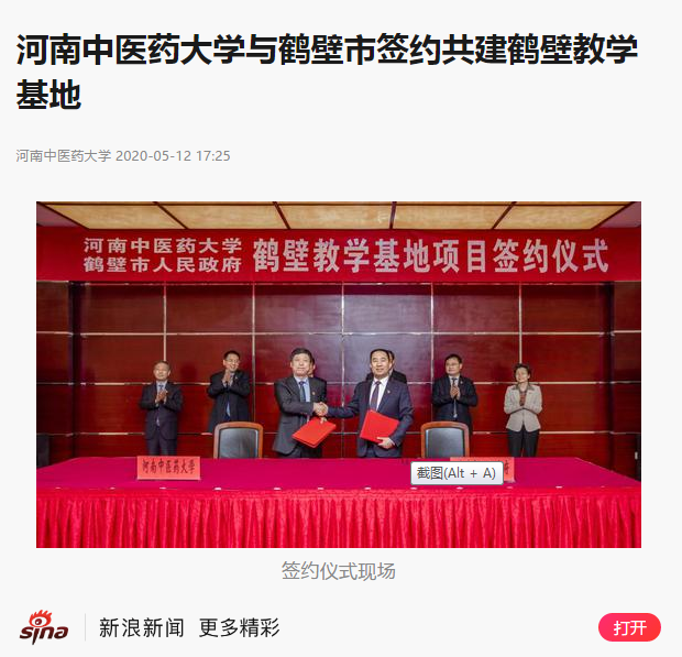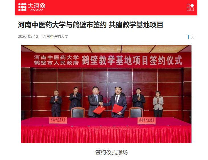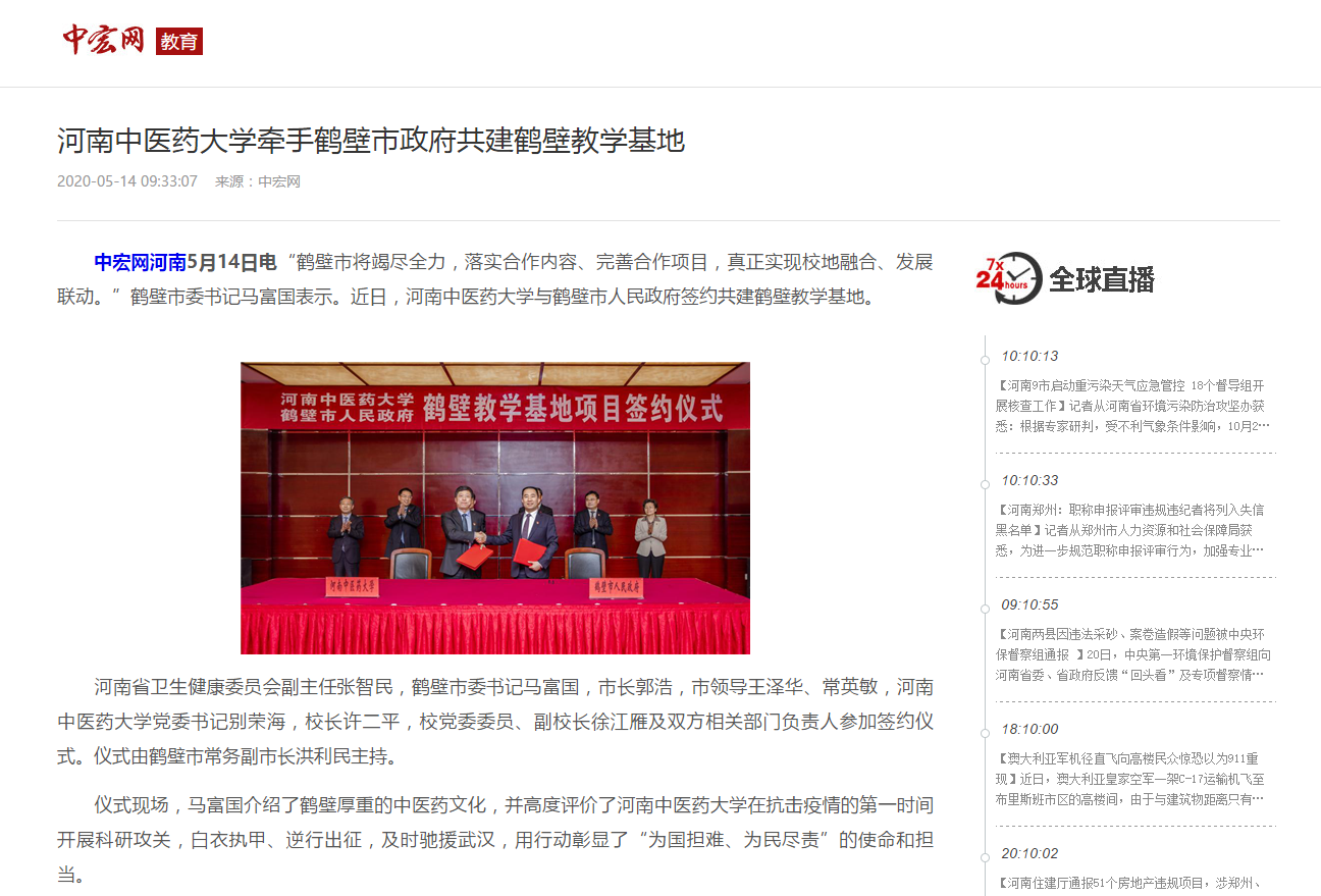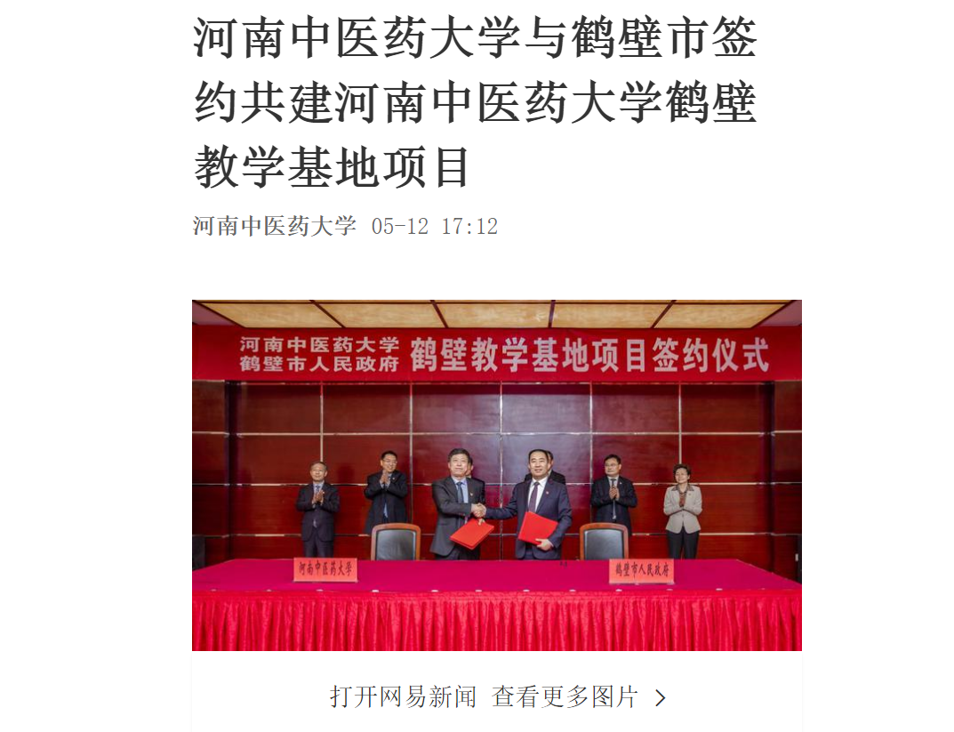 2020年5月12日-14日,中宏网、大河网、网易新闻、新浪新闻对我校与鹤壁市签约共建鹤壁教学基地进行报道。