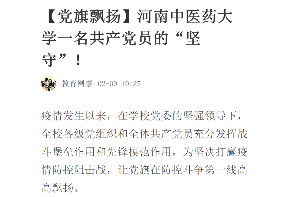 编者按:2020年2月9日,大河网、网易新闻对我校针灸推拿专业的毕业生郑进科面对疫情递交请愿书进行报道。现将大河网全文刊发如下: