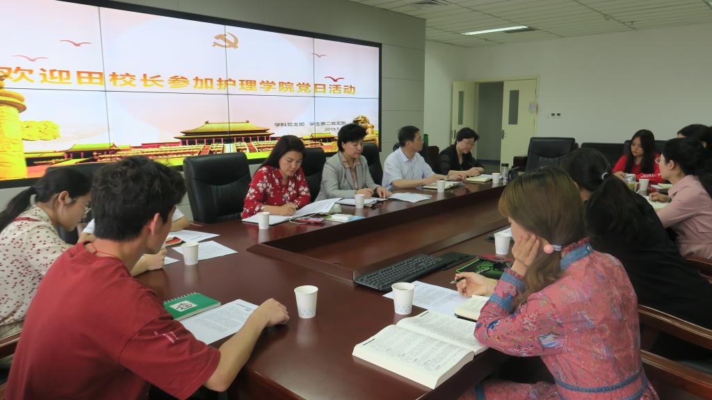 在护理学科党支部和学生第二党支部的主题党日活动中,田力听取了护理学院党委书记尹丽对护理学科党支部和学生第二党支部建设情况的汇报,详细了解了本次主题党日活动的流程,并就中共中央政治局委员、国务院副总理孙春兰在2019年“5·12”国际护士节前夕看望护理工作者时的讲话精神,与师生党员代表进行沟通交流。田力对两个支部的建设工作及主题党日活动的开展给予充分肯定,她指出,我校是省内唯一一所培养高等中医护理人才的院校,护理学院要用高度的责任心高质量做好人才培养工作,发挥基层党组织的思想引领作用,不忘初心,牢记使命,坚定信念,指引学生走好人生道路。