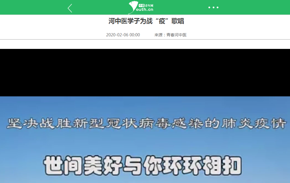 编者按:2020年2月日,中青网对我校学子为战“疫”歌唱进行报道。现将全文刊发如下: