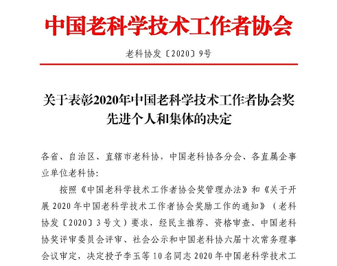 2020年5月30日,中国老科学技术工作者协会发出“关于表彰2020年中国老科学技术工作者协会先进个人和集体的决定”,我校81岁退休教授段振离榜上有名。