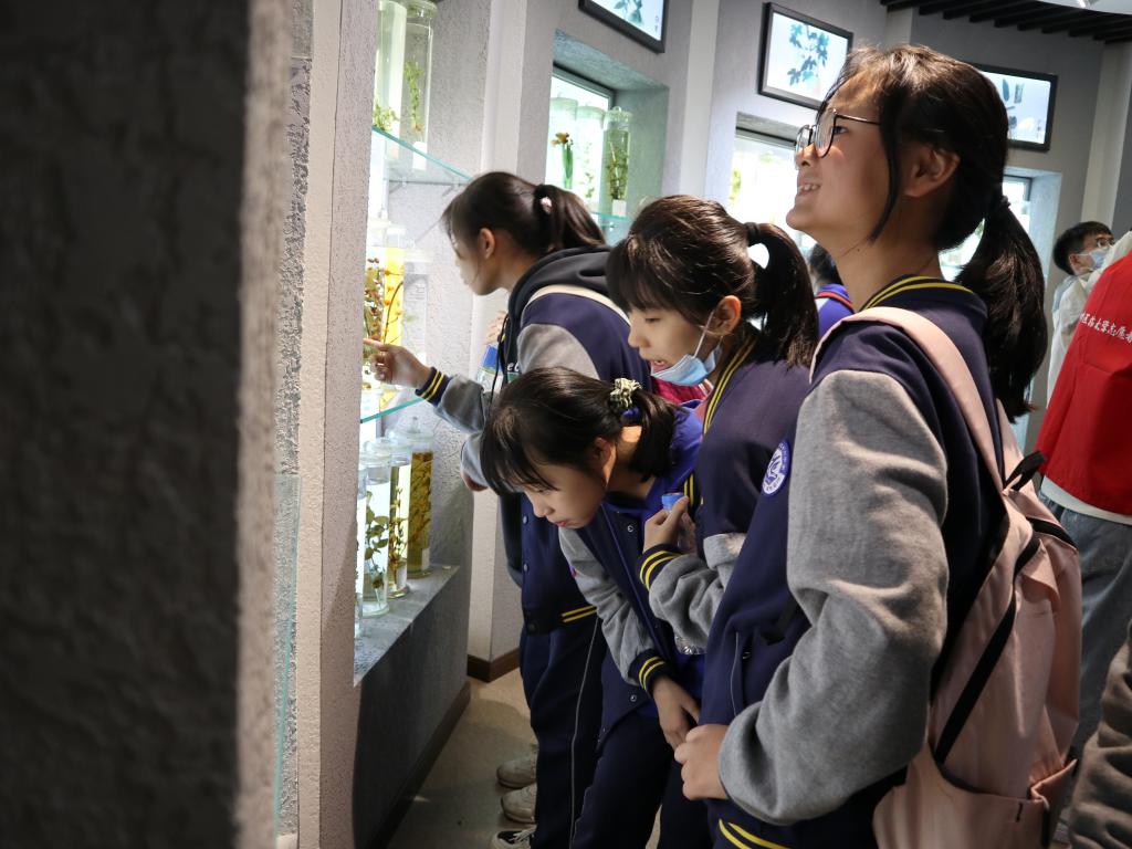 校史馆、中药馆等文化展馆陈列整齐、内容详实,中医药资源丰富多彩,充分展示了中医药文化的历史悠久、博大精深。在抗疫展厅,讲解员从抗疫史录、战疫实录、科学防治和共同抗疫四个方面详细介绍了中医药在抗疫疫情中发挥的作用以及我校在抗击疫情中作出的贡献,同学们被深深震撼,不时拍照、记录。在月光剧场,梅永震、王静两位老师介绍了中医传统养生功法八段锦的舒展筋骨、缓解疲劳、活血通气等功效,并讲解了各节动作要领和注意事项,带领同学们共同学习了八段锦。同学们认真听讲,反复练习,大家在学习中领会了中医药文化的魅力,现场气氛十分活跃。