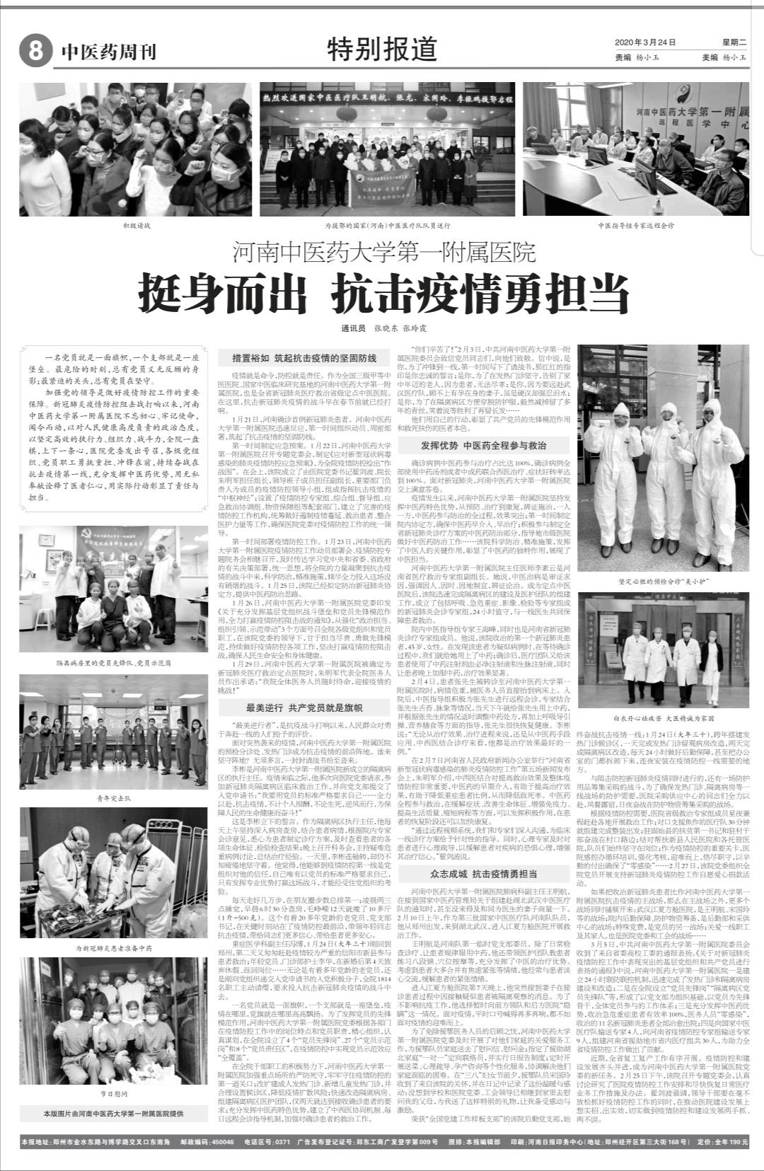 编者按:2020年3月24日,医药卫生报以《亚盈app(中国)官方网站第一附属医院 挺身而出 抗击疫情勇担当》为题,对一附院全院充分发挥中医药优势,持续奋战在抗击疫情第一线进行专题报道。现将全文刊发如下: