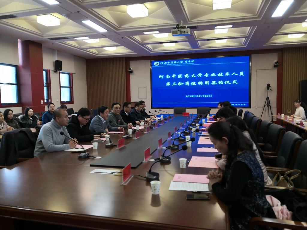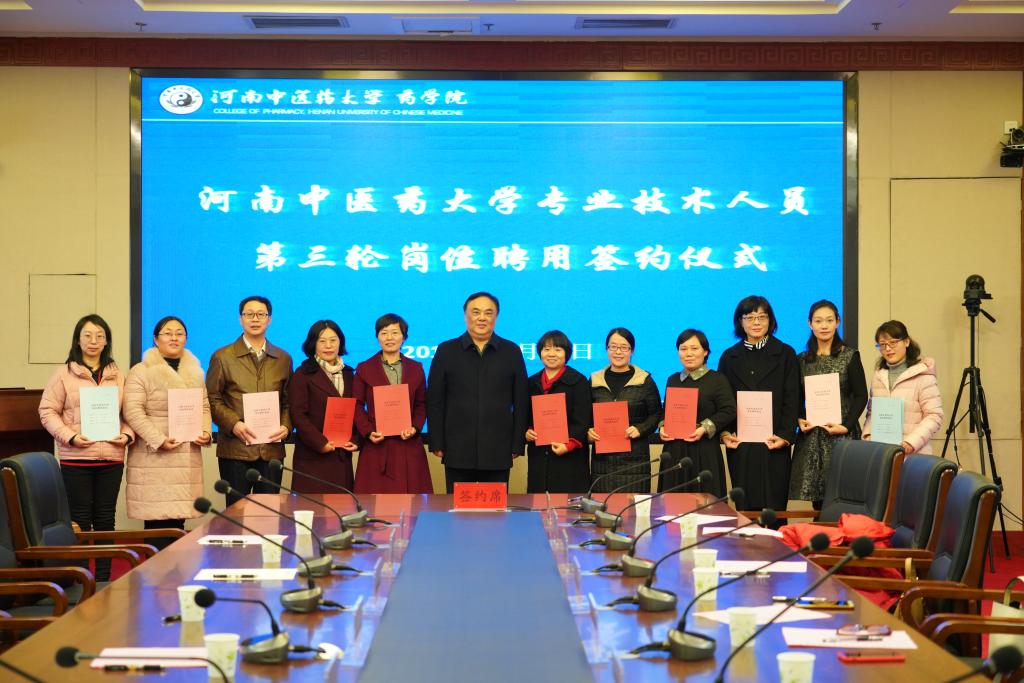 本网讯(文图/郭彦虎 时博)2019年12月20日,我校专业技术人员第三轮岗位聘用签约仪式在图书馆第三报告厅举行。校党委委员、副校长张小平和人事处、药学院负责人、专业技术人员签约代表以及药学院部分教职工参加活动。活动由药学院党委书记陈随清主持。