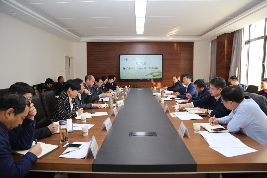 本网讯(文/董新刚 图/刘琦)为深入调研、充分了解各附属医院在医教协同运行管理、师资队伍建设和教学改革中取得的成效、存在的困难问题和意见建议,深化医教协同教育教学改革,进一步提高人才培养质量,高质量促进学校转型发展。2019年3月5日至8日,校长许二平带领校长办公室、人事处、发展规划处、教务处、研究生院、基础医学院等相关部门、单位负责人,先后到第一、第二、第三附属医院和亚盈app(中国)官方网站人民医院就“深化医教协同机制、提高人才培养质量”工作开展情况进行专题调研。