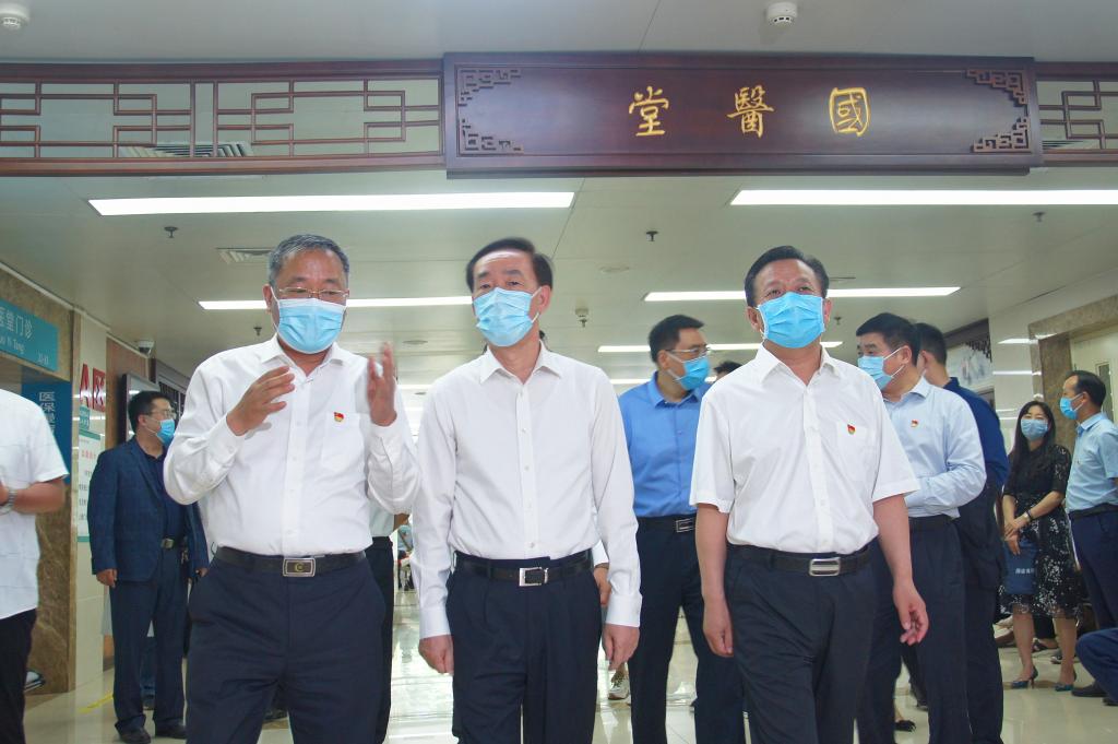 戴柏华一行先后来到一附院公共卫生医学中心、门诊大厅、国医堂及儿科门诊等,详细了解医院新冠肺炎疫情防控和中医诊疗工作,并主持召开座谈会,听取相关情况汇报。