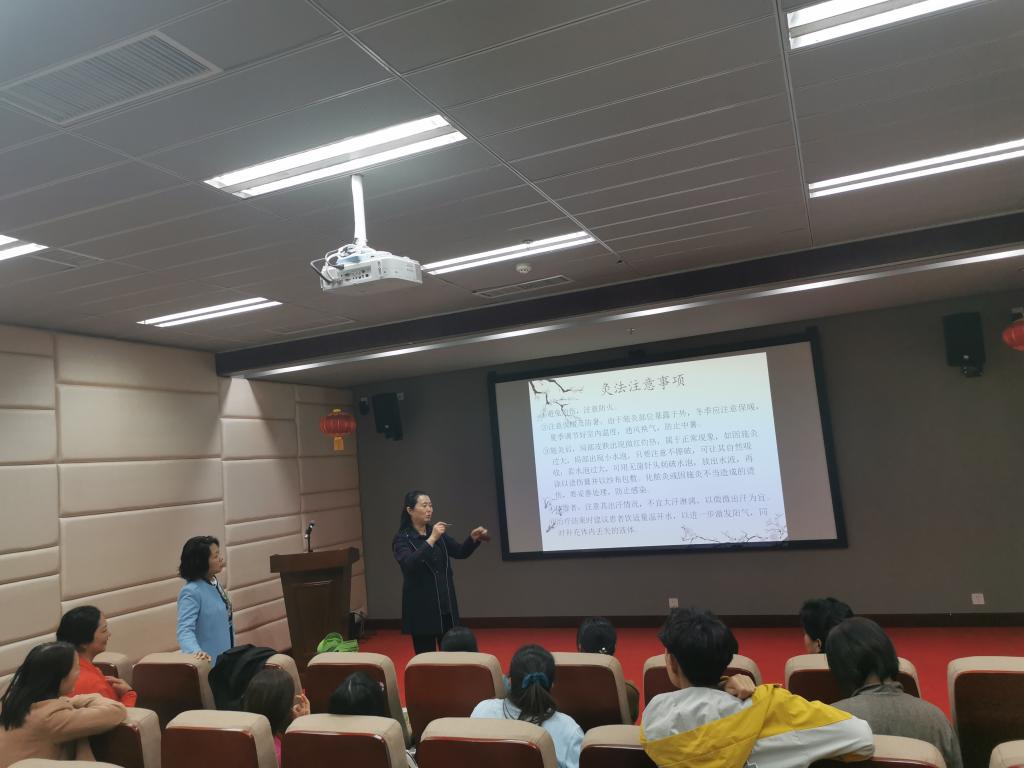 本网讯(文图/吴晓萍)为更好地认识中医药文化,将中医疗法融入生活,2019年11月7日下午,我校一附院针灸科疼痛门诊主任赵俐黎教授应邀参加2019年女教职工“幸福工程”系列活动,在图书馆803室以《中医之精髓如何灵活应用于临床》为题作专题讲座。学校女职工委员会委员、基层工会女工委主任、委员及教职工六十多人参加讲座。讲座由学校女工委副主任常瑞主持。
