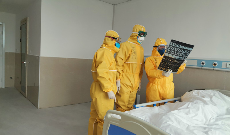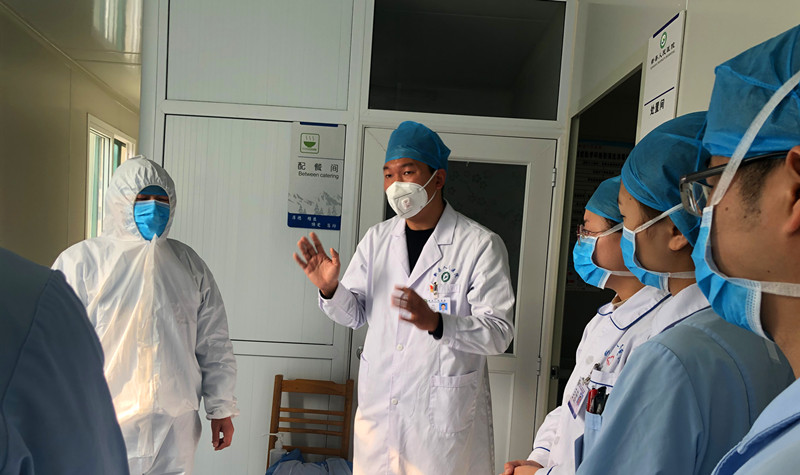 初一中午赶到之后,他就不停歇地进入了一线战斗中:完善预检分诊、发热门诊、感染性疾病科等重点科室功能流程,组织全院医务人员进行医疗及防护培训,部署各项防控措施等等,他的到来让全院医务人员信心倍增,在他的带动下,大家纷纷请缨参加这场没有硝烟的战争。