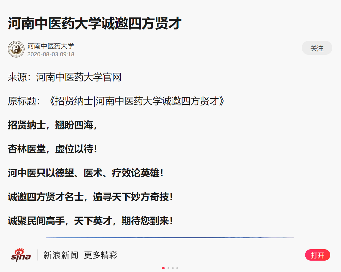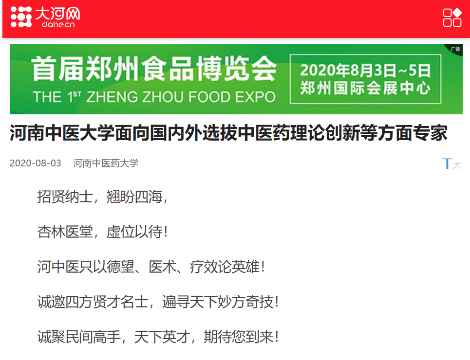 大河网、中青河南等丨亚盈app(中国)官方网站面向国内外选拔中医药理论创新等方面专家