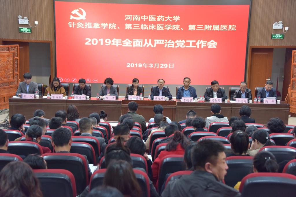 本网讯(文/李博彧 图/田辉)为进一步贯彻落实全面从严治党责任要求,2019年3月29日下午,三附院召开2019年全面从严治党工作会议。校纪委副书记赵群英出席会议并讲话。医院领导班子成员、各党总支(直属党支部)书记、全体纪检员及中层干部等参加会议。医院党委副书记陶洁主持会议。