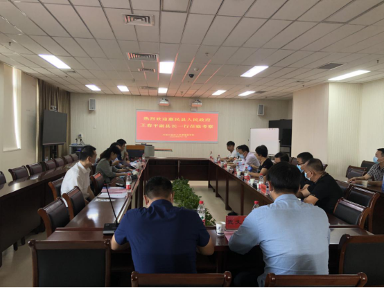 本网讯(文/图 黄金)2020年8月11日,山东省惠民县副县长王春平带领惠民县卫健局、中医院、卫校、春夏秋冬(山东)养老产业有限公司相关负责人一行,前来我校进行考察调研,并围绕就业、人才培养等相关合作事宜与我校招生就业处副处长王晓蕊、康复医学院党委副书记孟长海、副院长许国防、刘斌等进行了交流座谈,座谈会由孟长海主持。