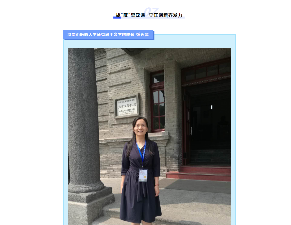 编者按:2020年3月25日,河南省教育厅官微对我校马克思主义学院院长张会萍打造“硬核”思政课进行报道。现将部分文章刊发如下: