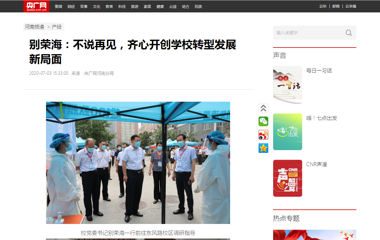 2020年7月3日,央广网对我校千余名2020届毕业生顺利返校进行报道。