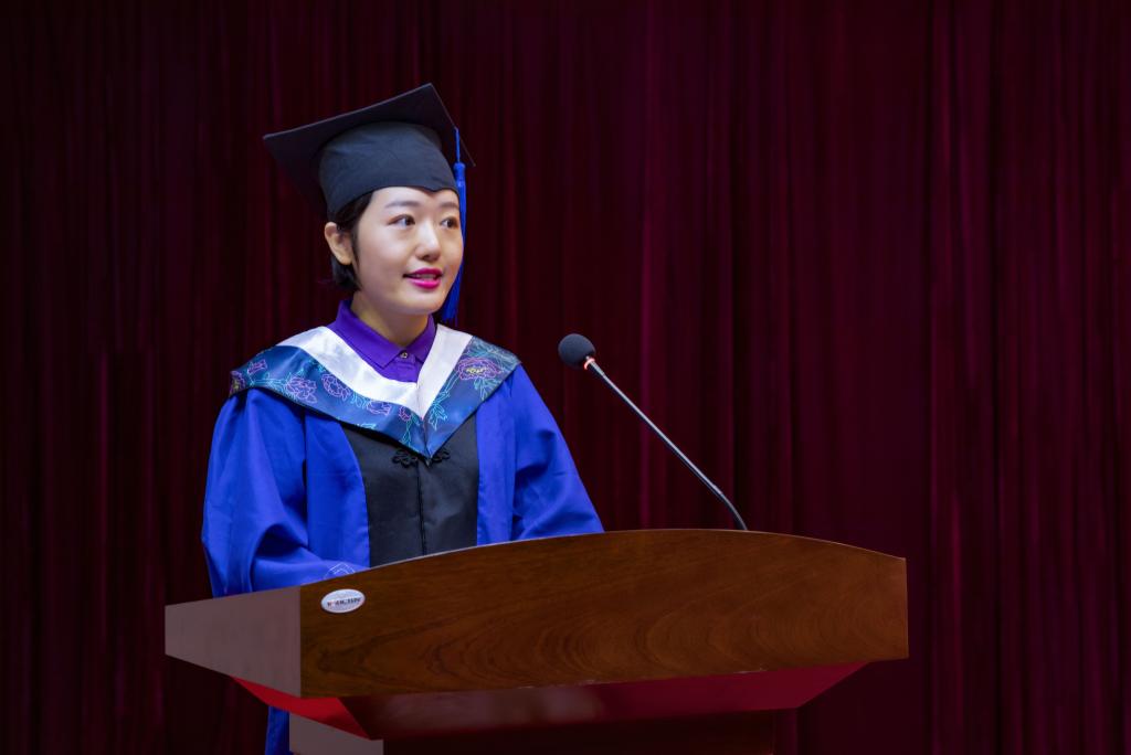第一临床医学院张蓝熙作为优秀研究生代表发言。她回顾了三年的研究生生涯,表达了对母校悉心培养的感谢,并表示一定不辜负老师们的殷切期望和深情嘱托,做一名德才兼备、勇于创新之人,做一名富有责任、敢挑重担之人。第一临床医学院博士生导师翟文生教授作为导师代表在发言中对即将走出校园的毕业生寄予深情期望,希望毕业生能够具备“学习的热情,纯真的心灵,严以律己、宽以待人的大气”的情怀,努力工作,享受人生,享受生活。随后,伴随着校歌,许二平为毕业研究生援苏正冠,颁授证书,并合影留念。