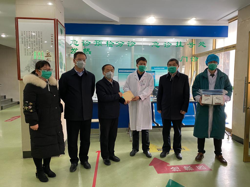 本网讯(文/吴金苗 图/田辉 郭伟)2020年1月29日上午,三附院党委书记周运峰、院长张大伟、副院长高翔带领工会及党院办有关负责人先后到发热门诊、预检分诊、感染办和医务部等部门调研指导新型冠状病毒感染的肺炎疫情防控工作,实地察看疫情防控措施落实情况,并看望慰问一线工作人员,送去慰问金、慰问品和防护用品。