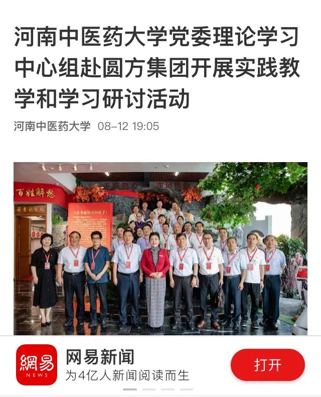 2020年8月12日,人民网、中新网、大河网、网易新闻等多家媒体对我校党委理论学习中心组赴圆方集团开展实践教学和学习研讨活动进行报道。