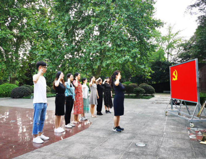 在新县,大家参观了革命博物馆、将帅馆,共同追忆峥嵘岁月,深刻体会了革命先烈一腔热血、一心报国的爱国情怀。随后来到鄂豫皖苏区首府烈士陵园,瞻仰革命烈士纪念碑、纪念堂。在纪念碑前,大家向革命先烈敬献花篮并三鞠躬,深情缅怀为新中国革命胜利献出宝贵生命的英雄先烈。在纪念堂内,学员们认真听取革命烈士事迹介绍,学习党的光辉历程,深刻理解大别山精神的丰富内涵。面对鲜艳的党旗,在院党委书记尹丽的领誓下,党员们重温入党誓词,再次激发了不忘初心、牢记使命的责任感和使命感。