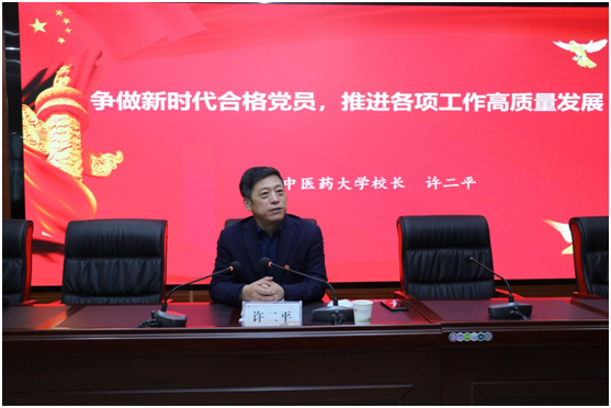 许二平以《争做新时代合格党员,推进各项工作高质量发展》为题,以新时代全面学习贯彻落实习近平新时代中国特色社会主义思想为主题,围绕提高政治站位,树立大局意识;提高个人素质,增强工作本领;提高管理水平,提升工作效率;提高服务水平,彰显中医药特色等四个方面就如何做一名合格的新时代党员;如何做一名符合习近平总书记要求的具备“七种能力”的领导干部,更好地推进医院和学校各项工作高质量发展进行了详细阐述。此次的党课内容丰富详实,许校长的讲述提纲挈领、深入浅出,震撼人心,既贴合医院和学校的工作实际,也为二附院下一阶段的发展提出了具体要求、指明了努力方向。